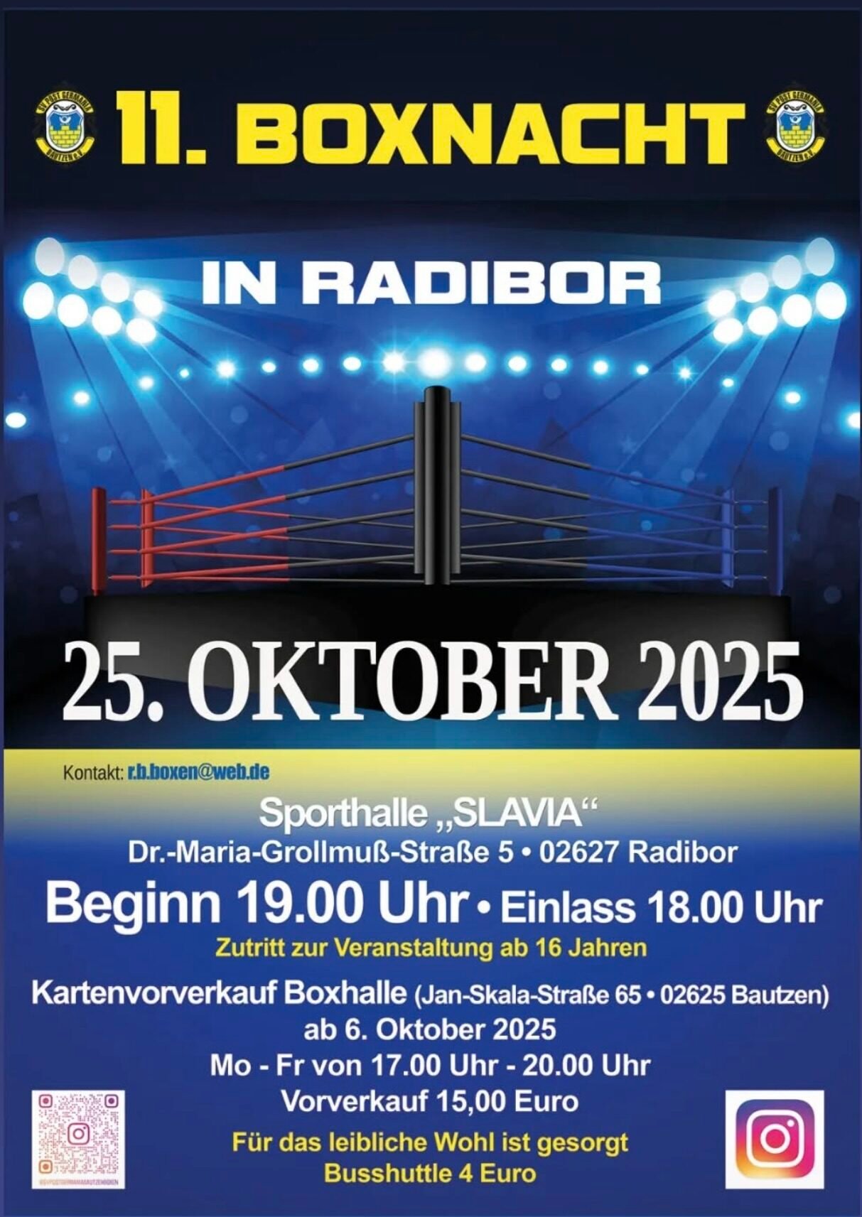 W ostatnią sobotę, 25 października 2025, pojechaliśmy na turniej do Radibor w Niemczech. Wioska położona w malowniczej krainie. Startowało na turnieju 5 osób z naszego klubu: Maryia Hryhoryeva, Bartosz Sławiński, Jaromir Chruszcz, Dawid Szarek oraz Nikodem Serwatyński. Wszyscy stoczyli bardzo dobre walki. Przegrał swoją walkę Dawid SZarek po kontrowersyjnym werdykcie sędziowskim. Pozostali zawodnicy wygrali walki.